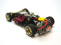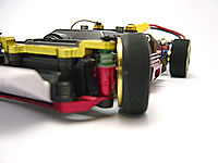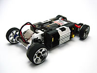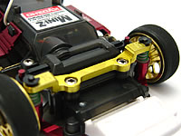 ミドシップでW/B 94mm(L)を実現するもの。KAWADAからもミドシップW/B Lを実現するモーターマウントが出ていますが、あっちは軽量化?を計ってからかアルミパーツとカーボンで構成されています(ビスの重量、マウント一体型Hバーが気になりますが…)。こっちはフルアルミ。重量はダンパーポストや、ビスを付けない状態で6.0gぐらいでした。仕上げは綺麗だし、EGR製モーターマウントではいつも通りのモータービス止めの為、バックラッシュ調整も事実上無段階でいい感じです。しかし気になるところはあります。まず、モーターの重心はPNのモーターマウントとカーボンで作った半自作MMW/B Mよりも高め、そして前回と同じようにベアリングが入りにくい、というか今回のはあまりにも入らなかったんでリューターでちょいと削っちゃいました。